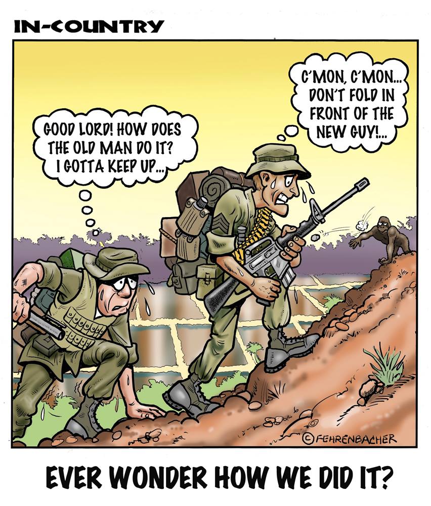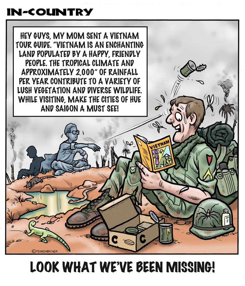 Phil enlisted in the Army in 1965 where you served for years in Vietnam. He became a graphic designer and has worked for the state of Oregon for 26 years. He retired in 2003 and started the Cartoon "In-Country". The cartoons reflect his experiences during his tour of duty in South Vietnam.